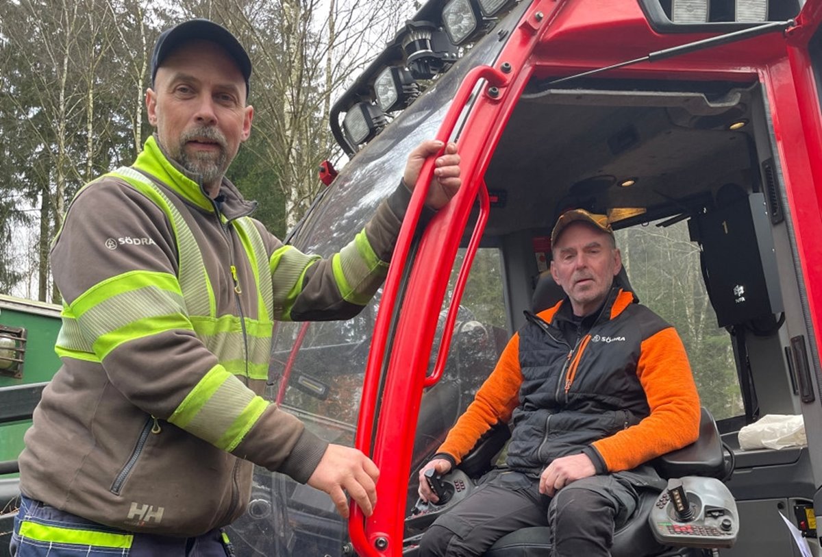 Klas-Erik Andersson och Max Bengtsén, gallringsskördarförare i team Oskarström på Södra Avverkning, har testat förarstödet NFA i två år och följt utvecklingen.